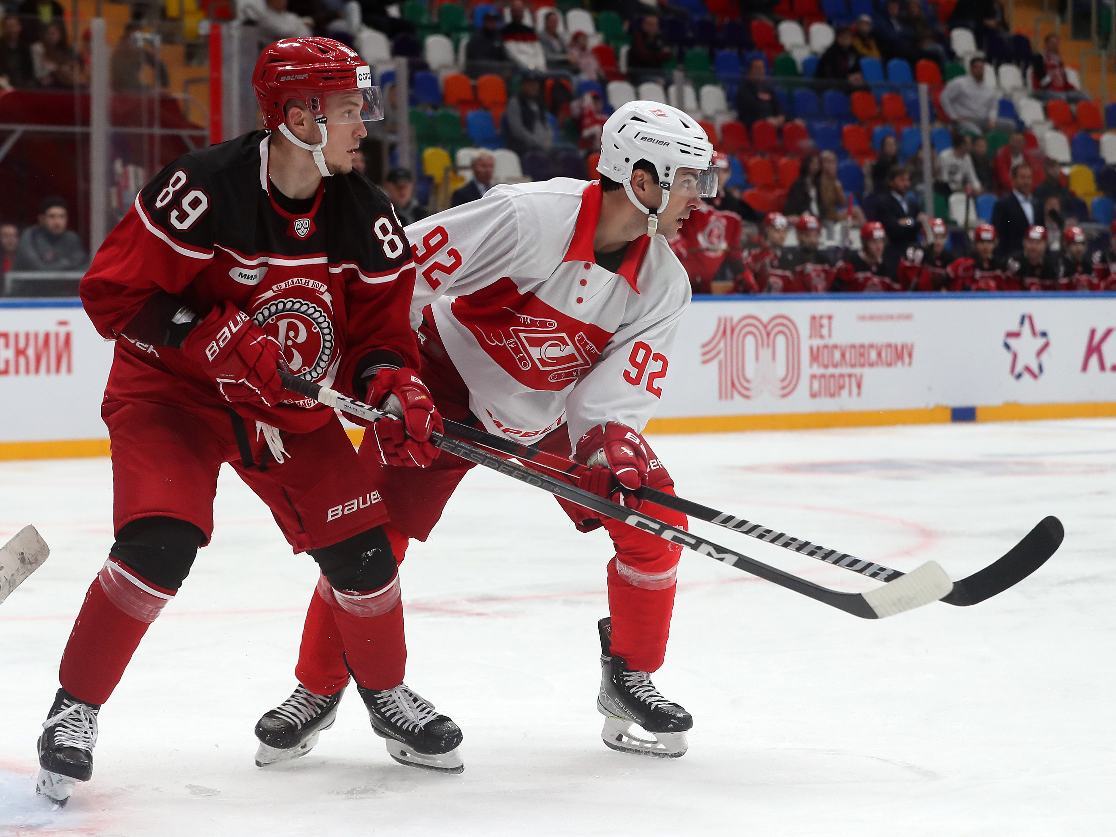 У красно-белых шайбы на счету Андрея Локтионова, Александра Бурмистрова и Анселя Галимова. У «витязей» отличились Владислав Кара и Александр Яремчук.