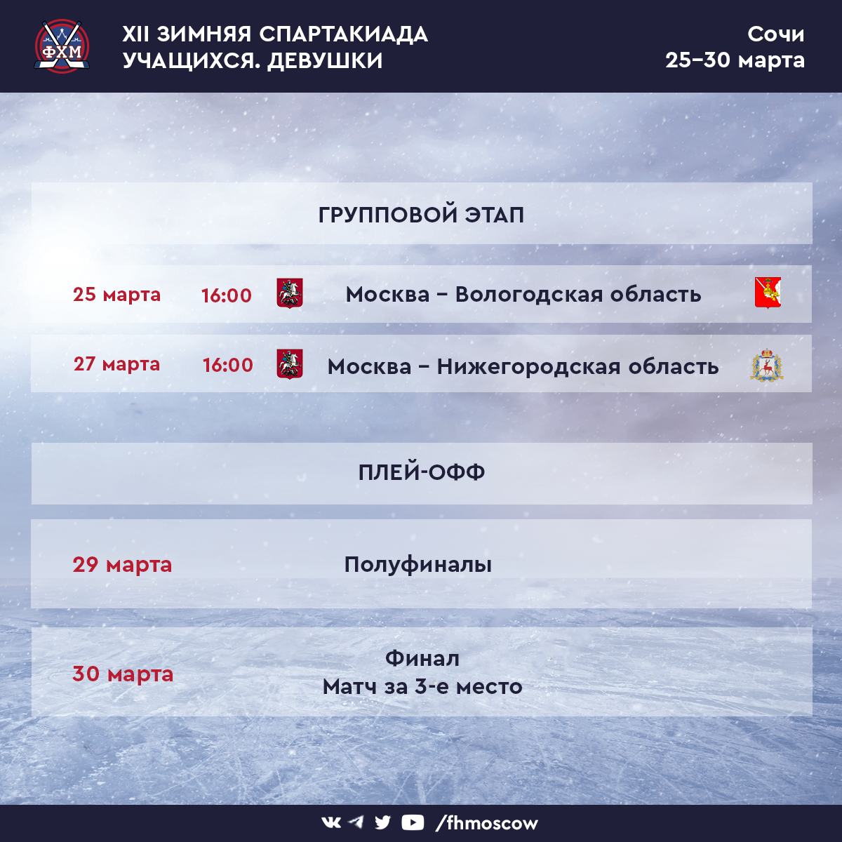 С 25 по 30 марта в Сочи пройдут соревнования по хоккею среди девушек в рамках XII зимней Спартакиады учащихся